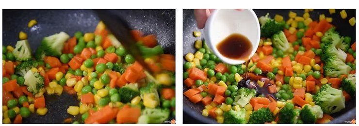 ตั้งกระทะใส่น้ำมันโดยเราจะใช้ไฟกลาง เมื่อน้ำมันร้อนให้เราใส่บรอกโคลีลวกและผักรวมมิตรแช่แข็งลงไปผัดให้เข้ากัน – ปรุงรสด้วยซีอิ๊วขาวและน้ำมันหอย จากนั้นผัดให้เข้ากันอีกทีแล้วยกออกจากเตาเตรียมนำไปจัดเสิร์ฟจ้า