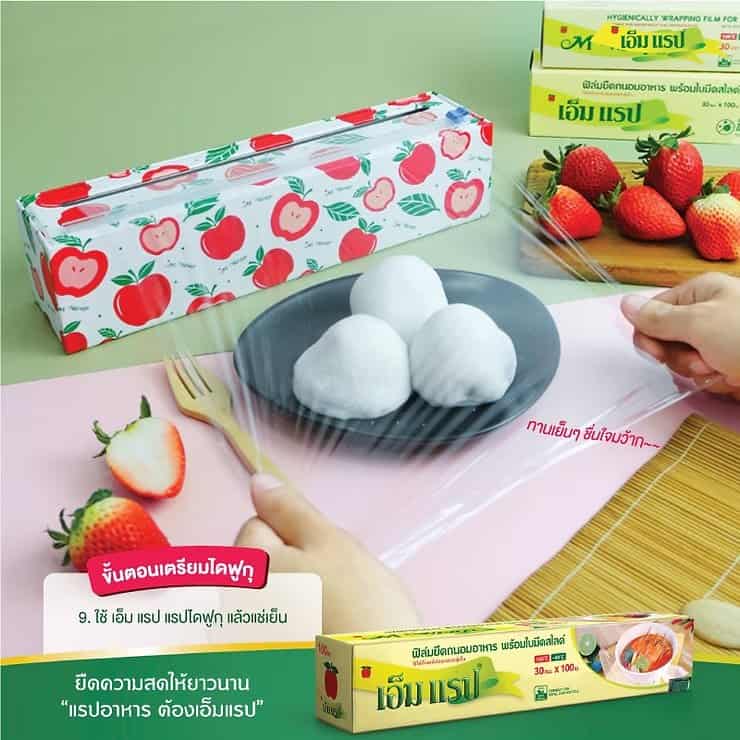 เมนูดูดีน่าอร่อยขนาดนี้ จะทำทั้งทีต้องจัดใหญ่ให้มีติดตู้เย็นไว้แบบพร้อมกิน รักษาคุณภาพให้สดใหม่อยู่เสมอได้ เพียงใช้แรปอาหาร จาก M Wrap มาห่อเพื่อจัดเก็บไดฟุกุไว้ในตู้เย็น เพื่อยืดอายุขนม สามารถนำออกมากินได้เมื่อต้องการ สนใจติดต่อเบอร์โทร. 02-741-8444 และ LINE @mmpcorp