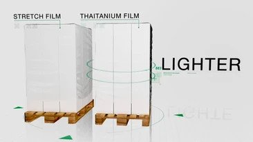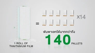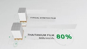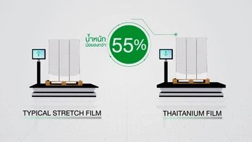 3. ไทเทเนี่ยมฟิลม์ ในการใช้งานจริงพบว่าน้ำหนักฟิล์มต่อ 1 พาเลท น้อยลงกว่าเดิมถึง 55% ถือเป็น Lightweight Technology ที่ช่วยให้การขนส่งสินค้ามีต้นทุนที่ลดลง โดยเฉพาะอุตสาหกรรมส่งออกสินค้า ที่จะสามารถตอบโจทย์ในเรื่องนี้ได้