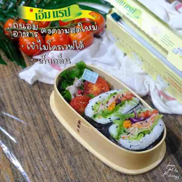 5.ใส่กล่อง แรปอีกชั้น เพื่อความสดใหม่ และเก็บกลิ่นอาหาร ปิดกล่อง พกไปกินได้เลยค่า