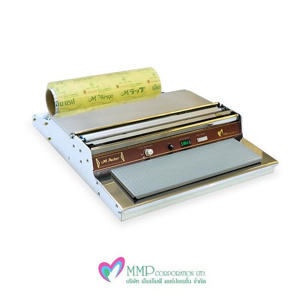 เครื่องแพ็คไฟฟ้าที่ทำด้วยสแตนเลส นำเข้าจากประเทศเกาหลี ใช้งานควบคู่กับฟิล์มถนอมอาหาร เอ็มแรป เพื่อประหยัดเวลาในการแพ็คสินค้า