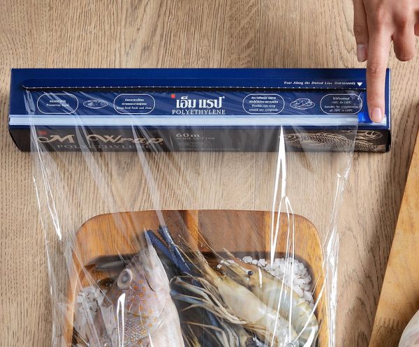 ฟิล์มถนอมอาหาร แบบ PE นิยมใช้สำหรับแรปของสด/เนื้อสัตว์เพื่อยืดอายุและนำไปแช่ช่องฟรีช เพราะสามารถทนอุณหภูมิเย็นได้ดีกว่ารุ่น PVC ถึง -70 องศาเลยค่ะ สามารถใช้แรปอาหารเพื่ออุ่นในเตาไมโครเวฟได้ นอกจากนี้ยังเหมาะกับการแรป/หมักแป้งเพื่ออบขนมและเบเกอรี่ต่างๆ (แต่ยังไงก็ไม่สามารถนำเข้าเตาอบได้) แต่จะเหมาะกับขั้นตอนในการแรปขนมหรือแป้งที่ยังมีความร้อน เหมาะสำหรับผู้ใช้ที่ทำอาหารที่มีความร้อนและน้ำมัน/ไขมันในเวลาเดียวกันแนะนำให้ใช้ฟิล์มรุ่น PE